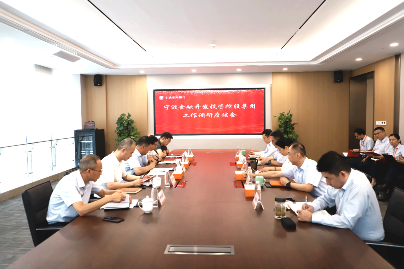 2025年10月13日下午,宁波金融开发投资控股集团有限公司党委书记、董事长李抱率集团党委委员、副总经理宋伟官、党委委员张法权,集团运营管理部、财务管理部负责人莅临我行调研并指导工作,总行党委书记、董事长周佳瑜及总行行领导、相关部门负责人陪同调研。